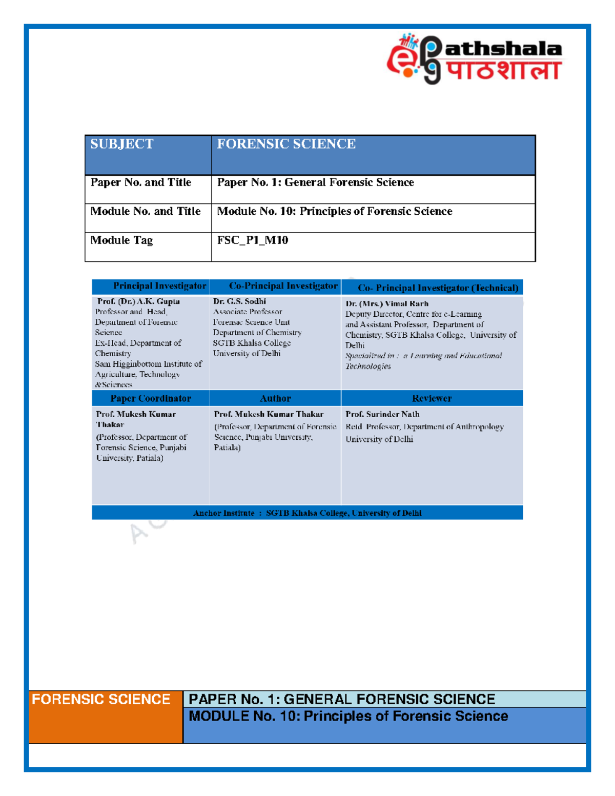 Principles of Forensic Science - FORENSIC SCIENCE PAPER No. 1: GENERAL ...