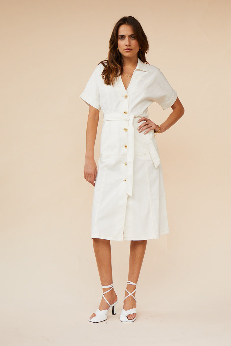 SUBOO - Bernie Button Front Midi Dress (Ivory)