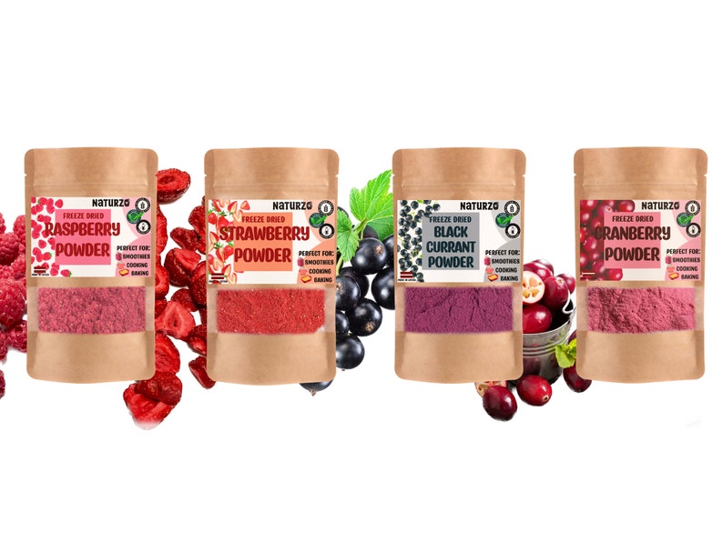 4x40g or 4x100g Freeze Dried Berry Powder Set: Raspberry, Strawberry ...