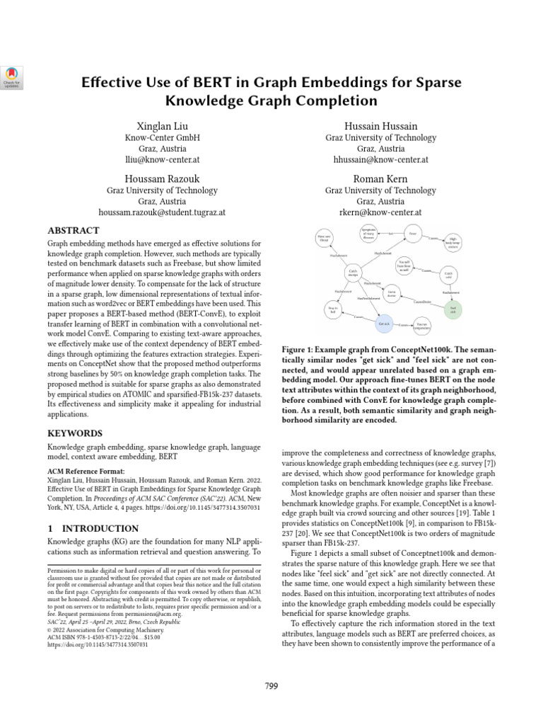 Effective Use of BERT in Graph Embeddings For Sparse Knowledge Graph ...