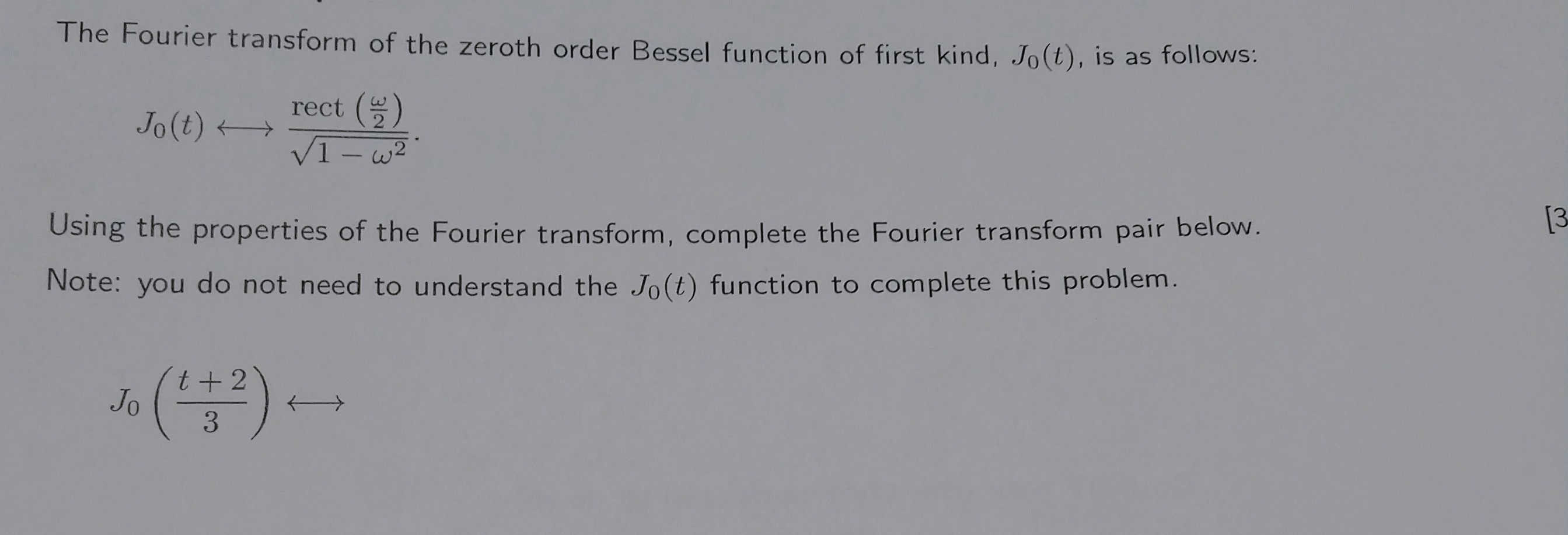 Solved The Fourier transform of the zeroth order Bessel | Chegg.com