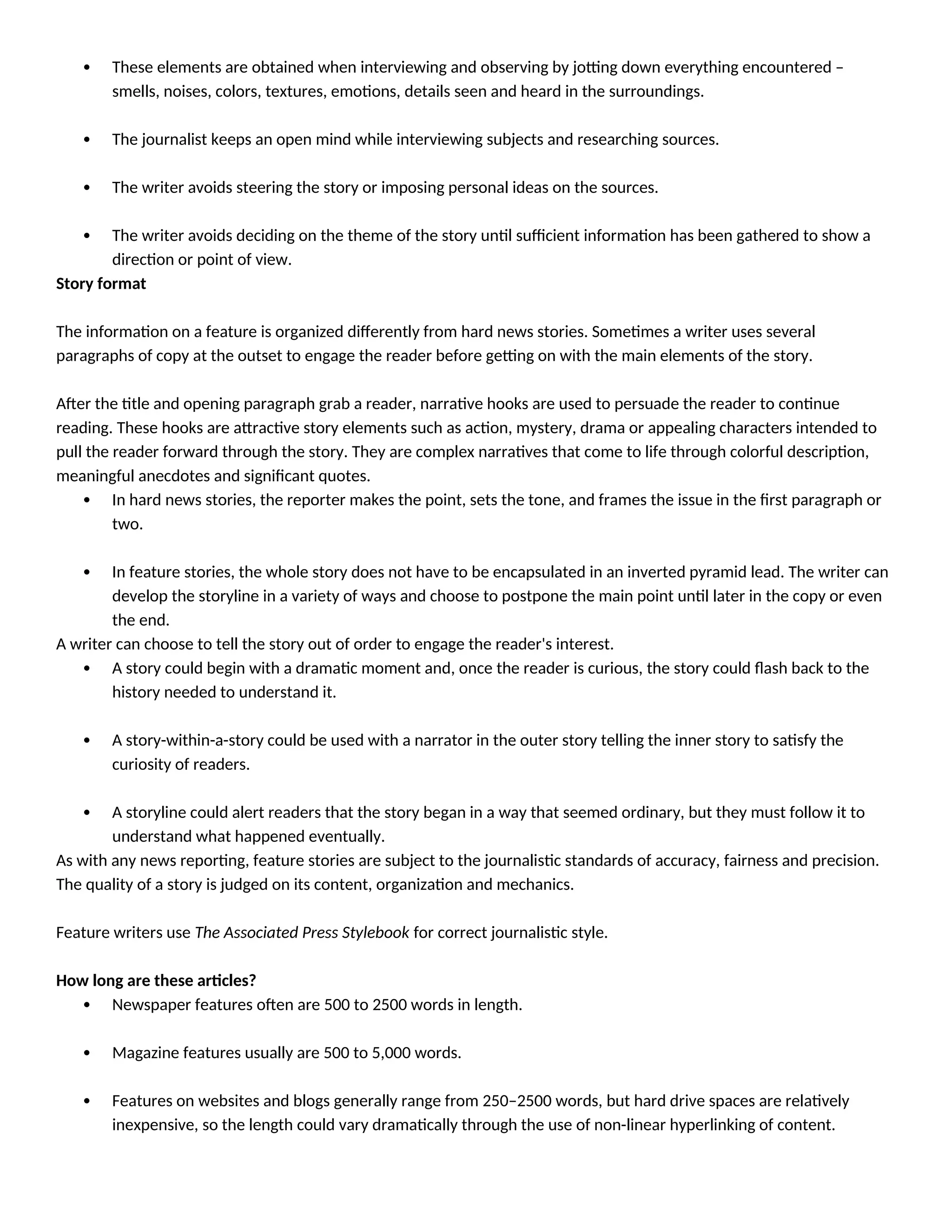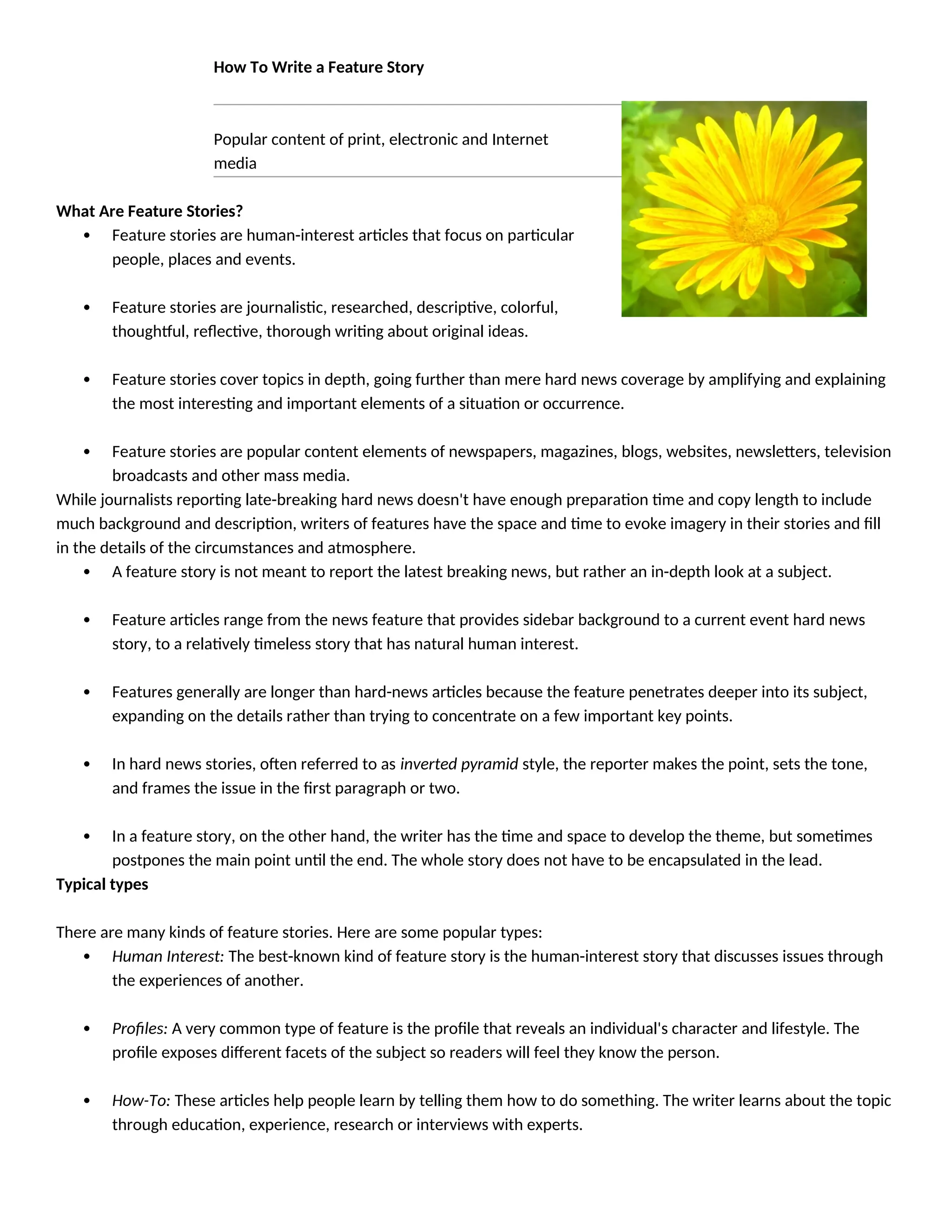 Feature Writing: Understanding and Crafting Engaging Articles - Studocu