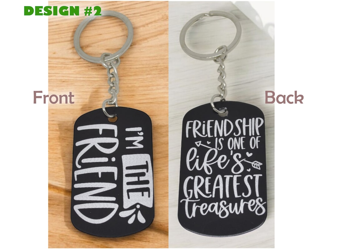 BFF Best Friend Forever Key Chain Script Writing Design Black Dog Tag ...