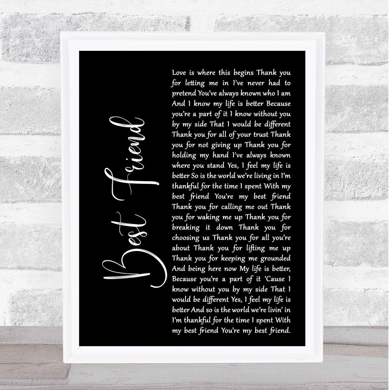 Amazon.com: Best Friend Black Script Song Lyric Art Music Quote Gift ...