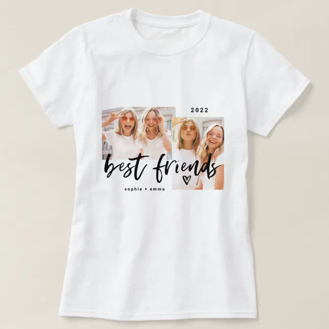 Best Friends | Casual Script and Two Photo Grid T-Shirt | Zazzle