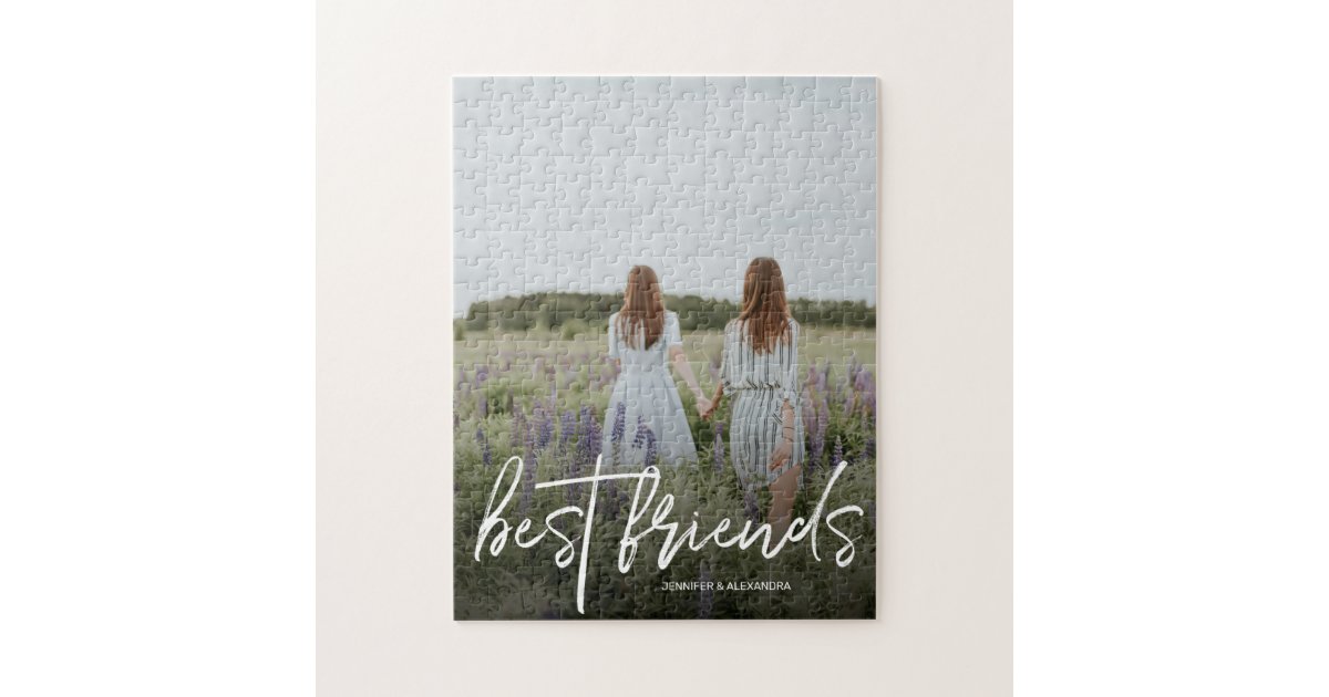 Modern Best Friends Script and Photo Jigsaw Puzzle | Zazzle