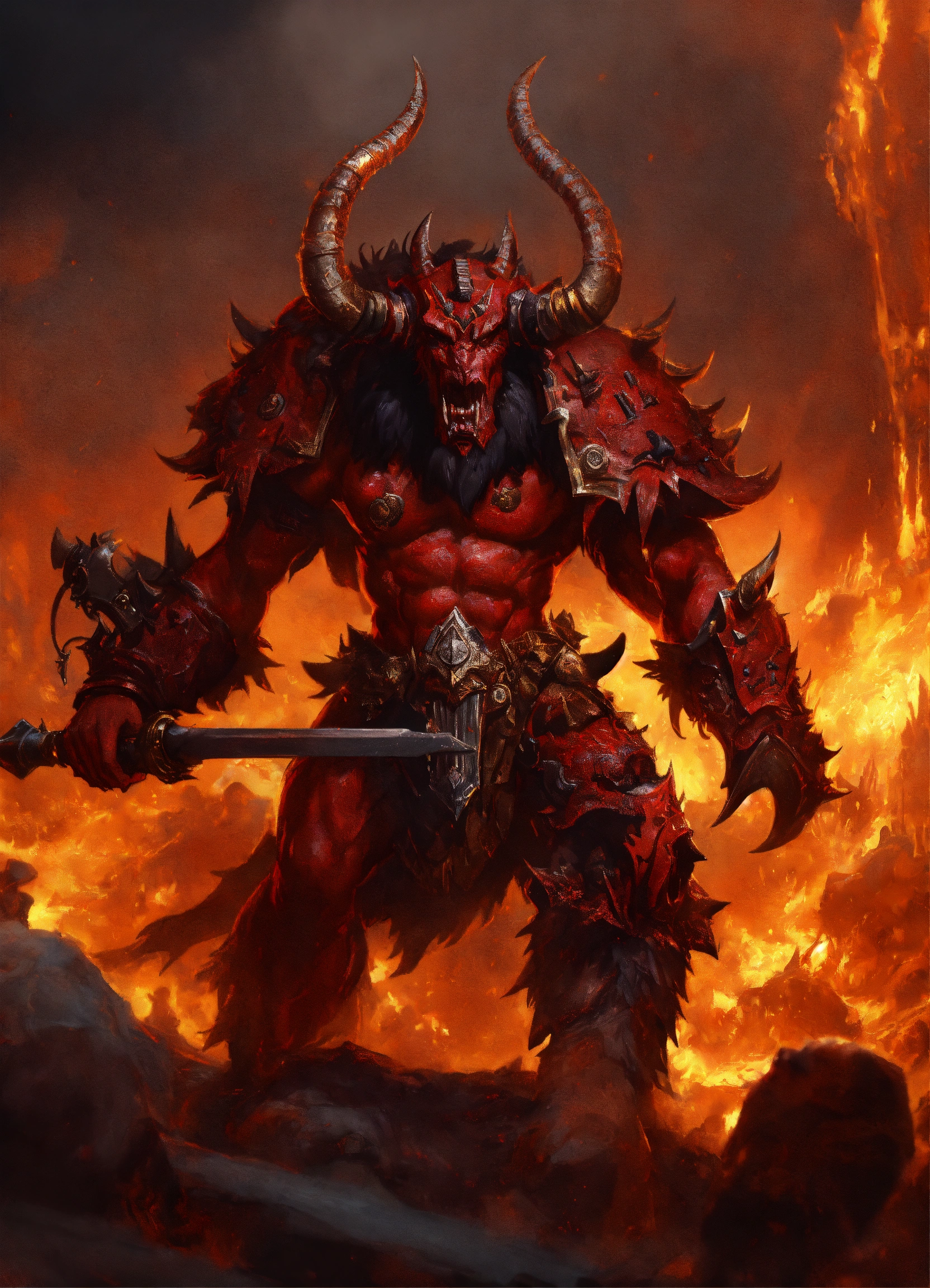 Lexica - A beastmen bestigor of khorne, warhammer fantasy chaos art, 4k