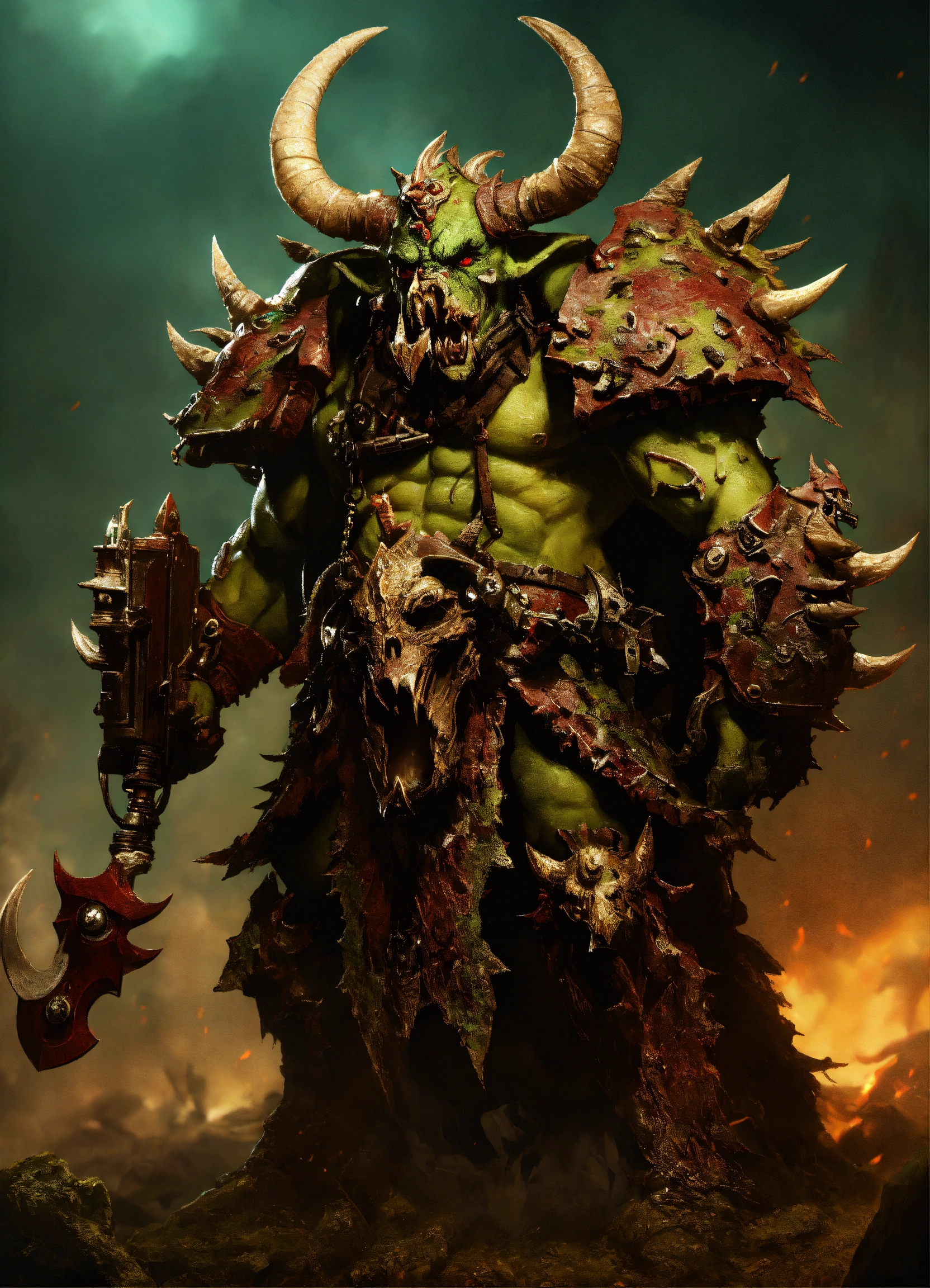 Lexica - A beastmen bestigor of nurgle, warhammer fantasy chaos art, 4k