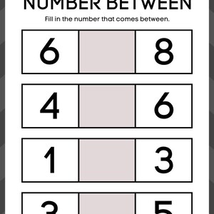 Number Between Worksheet, Printables, Kindergaten by Master Tinz