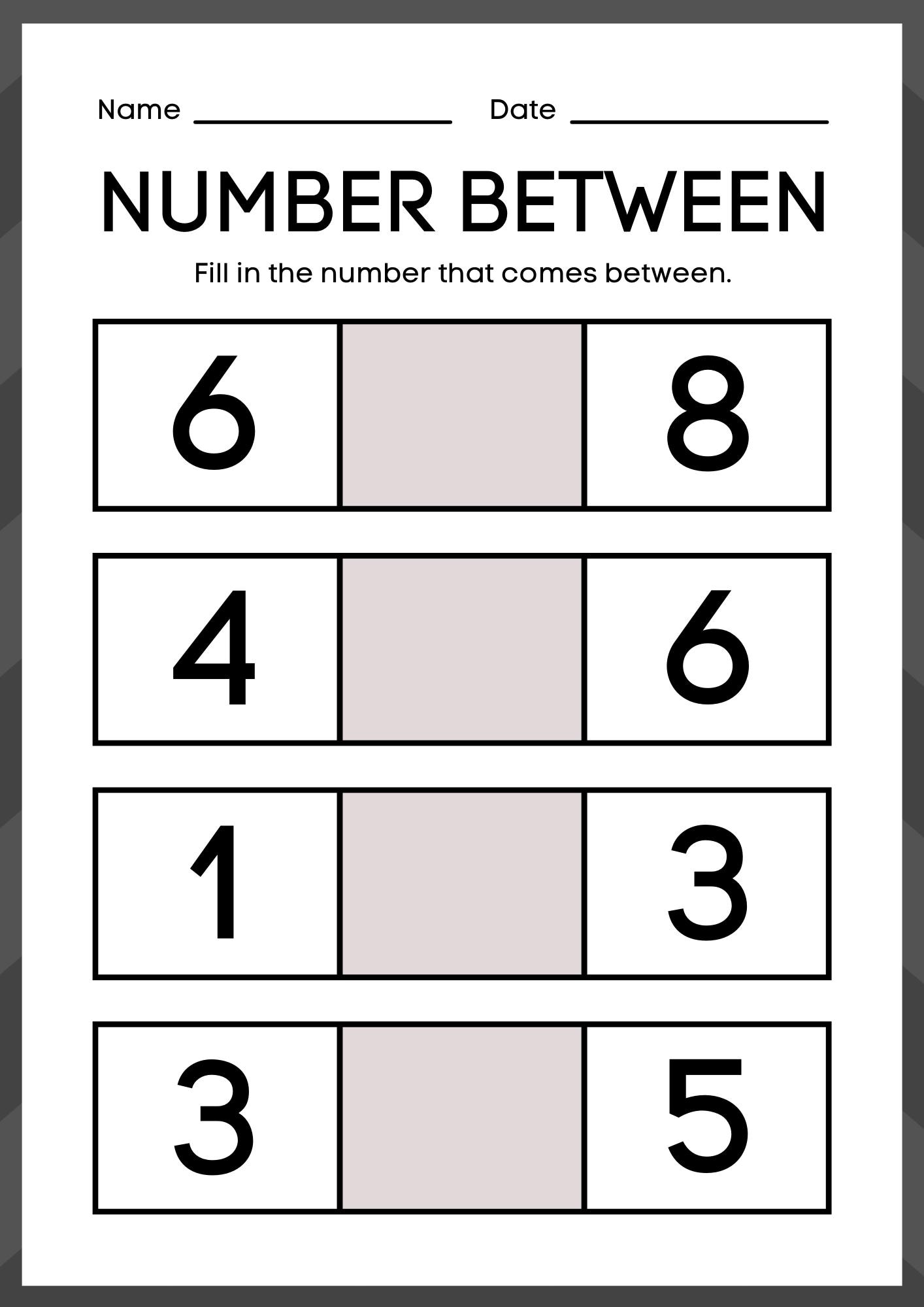 Between Numbers Worksheets | Download Free Printables For Kids ...