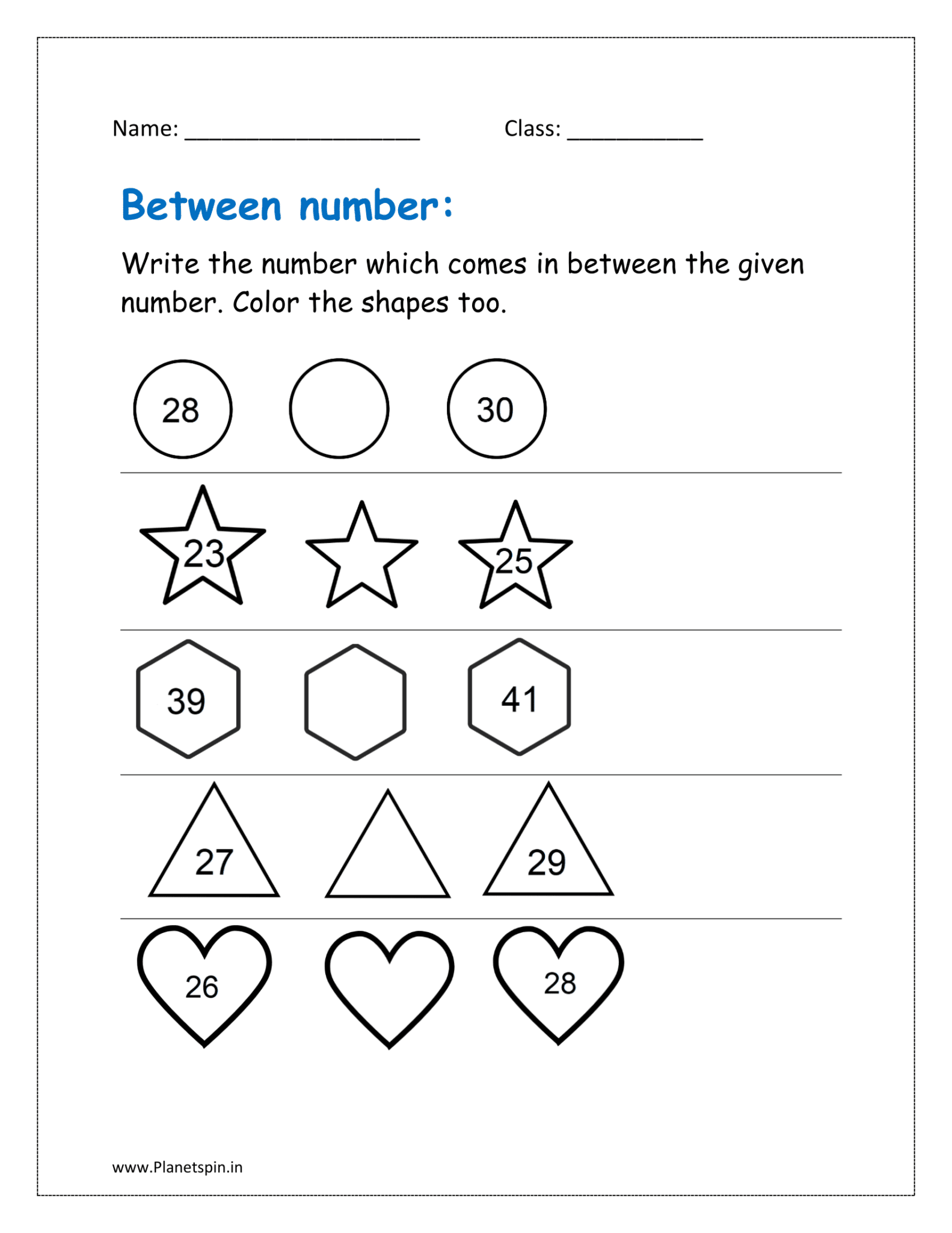 Between number worksheet for kindergarten | Planetspin.in