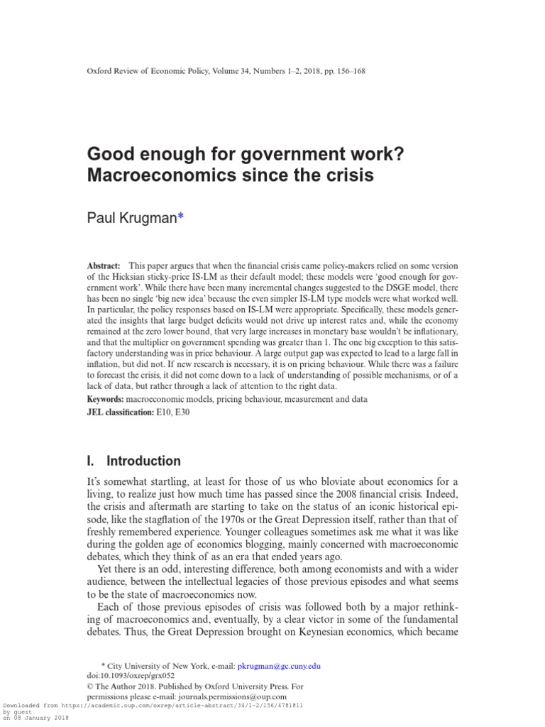 Good Enough For Government Work? Macroeconomics Since The Crisis | PDF ...