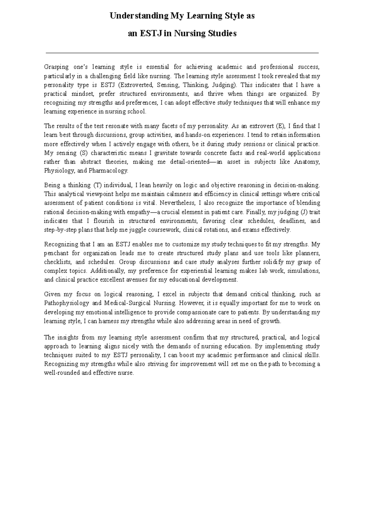 Funda - BHHHH - Understanding My Learning Style as an ESTJ in Nursing ...