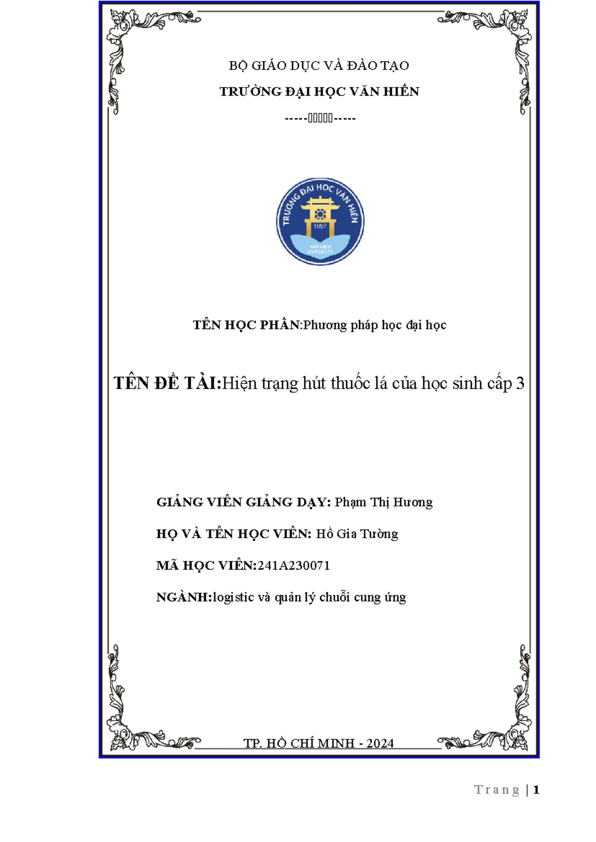 Nghiên cứu Tình Trạng Hút Thuốc Lá Ở Học Sinh Cấp 3 - PHƯƠNG PHÁP HỌC ...