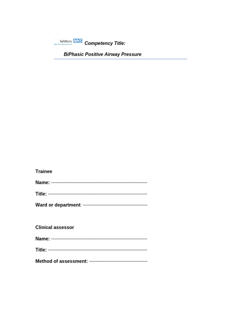 Bipap Competency Ward Appendix e | PDF | Respiratory System | Breathing