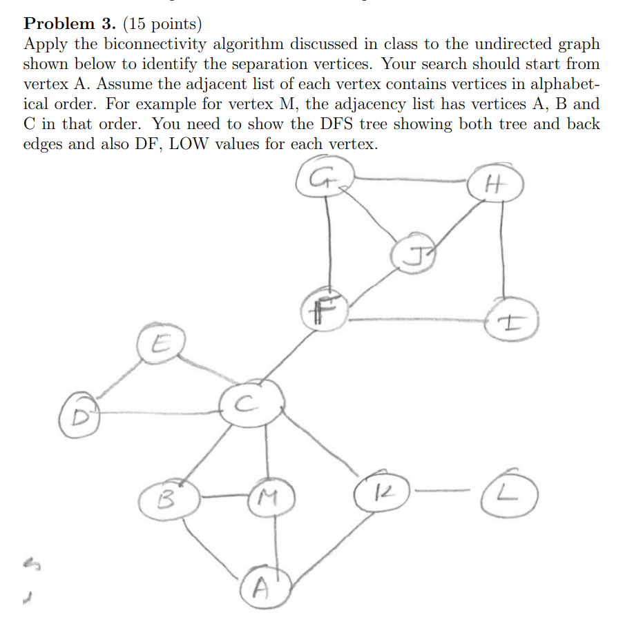Solved Problem 3. (15 points) Apply the biconnectivity | Chegg.com