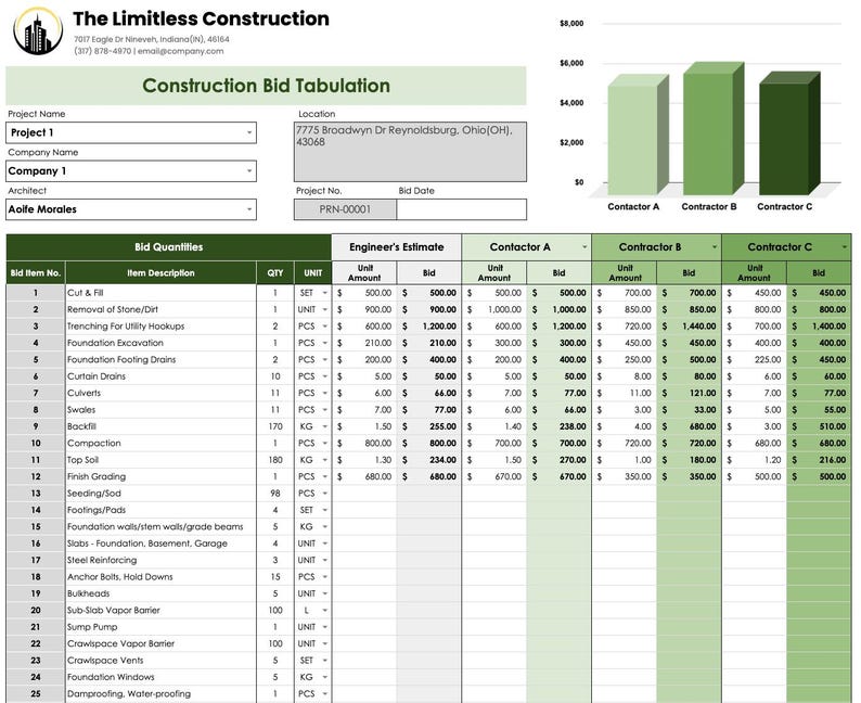Construction Bid Tabulation Google Sheets Template for Comparing ...