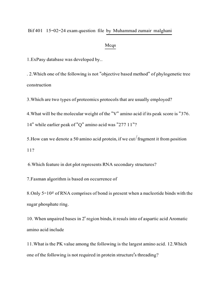 Bif 401 Question File | PDF | Sequence Alignment | Proteins
