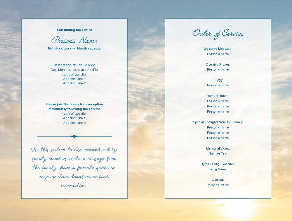 8 Page Bifold Funeral Program TEMPLATE, Blue Watercolor Celebration of ...