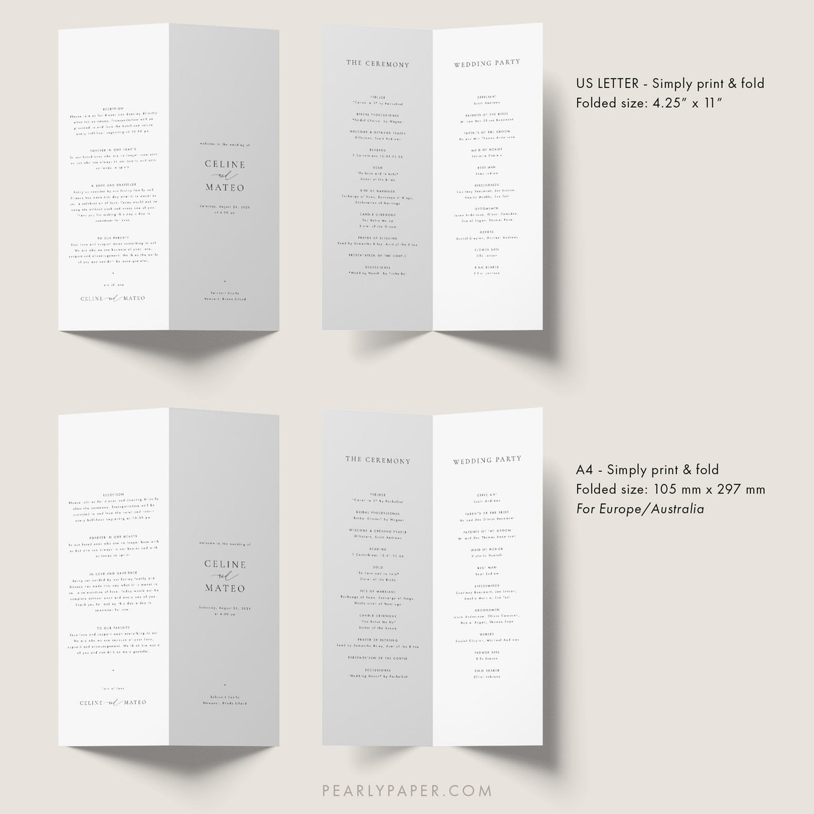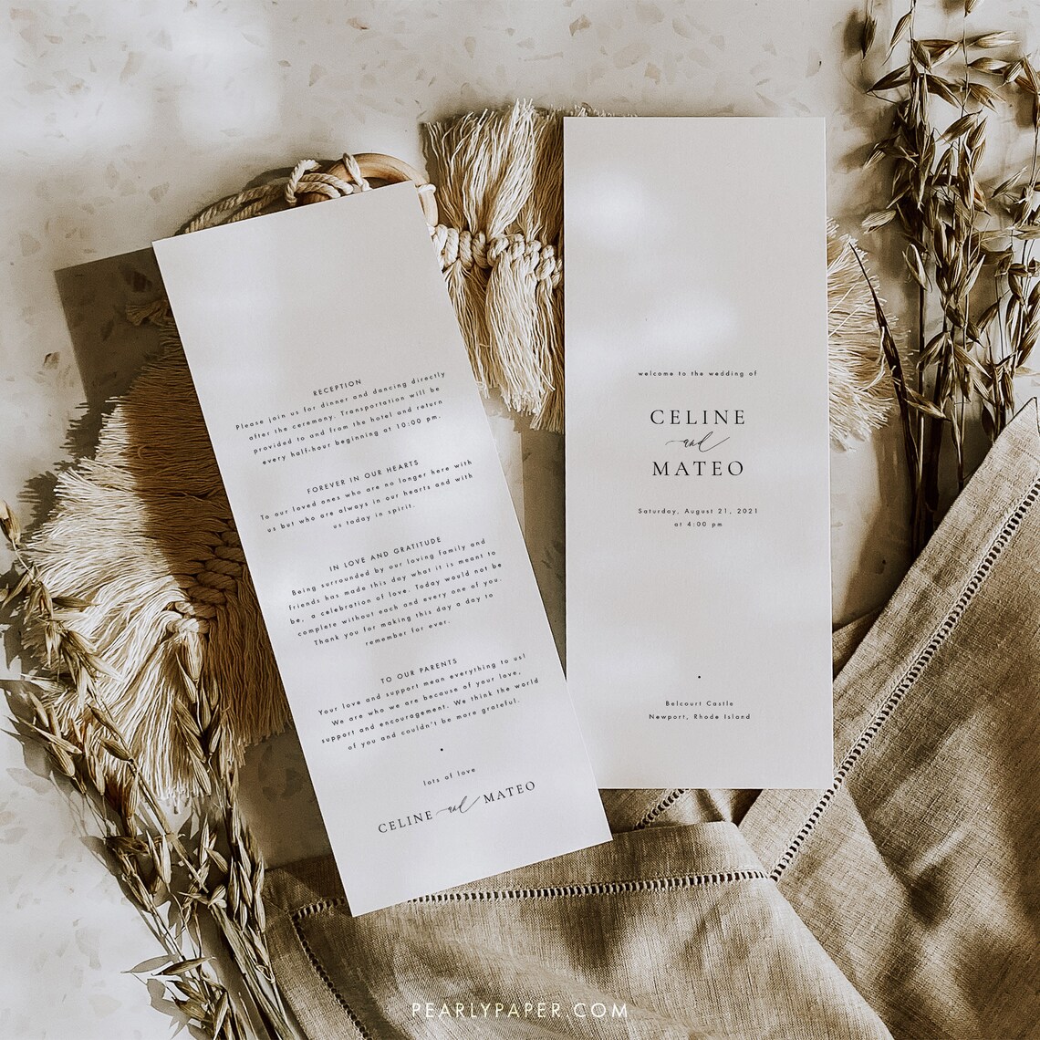 Bifold Wedding Program Template, Order of Service, Minimalist Program ...