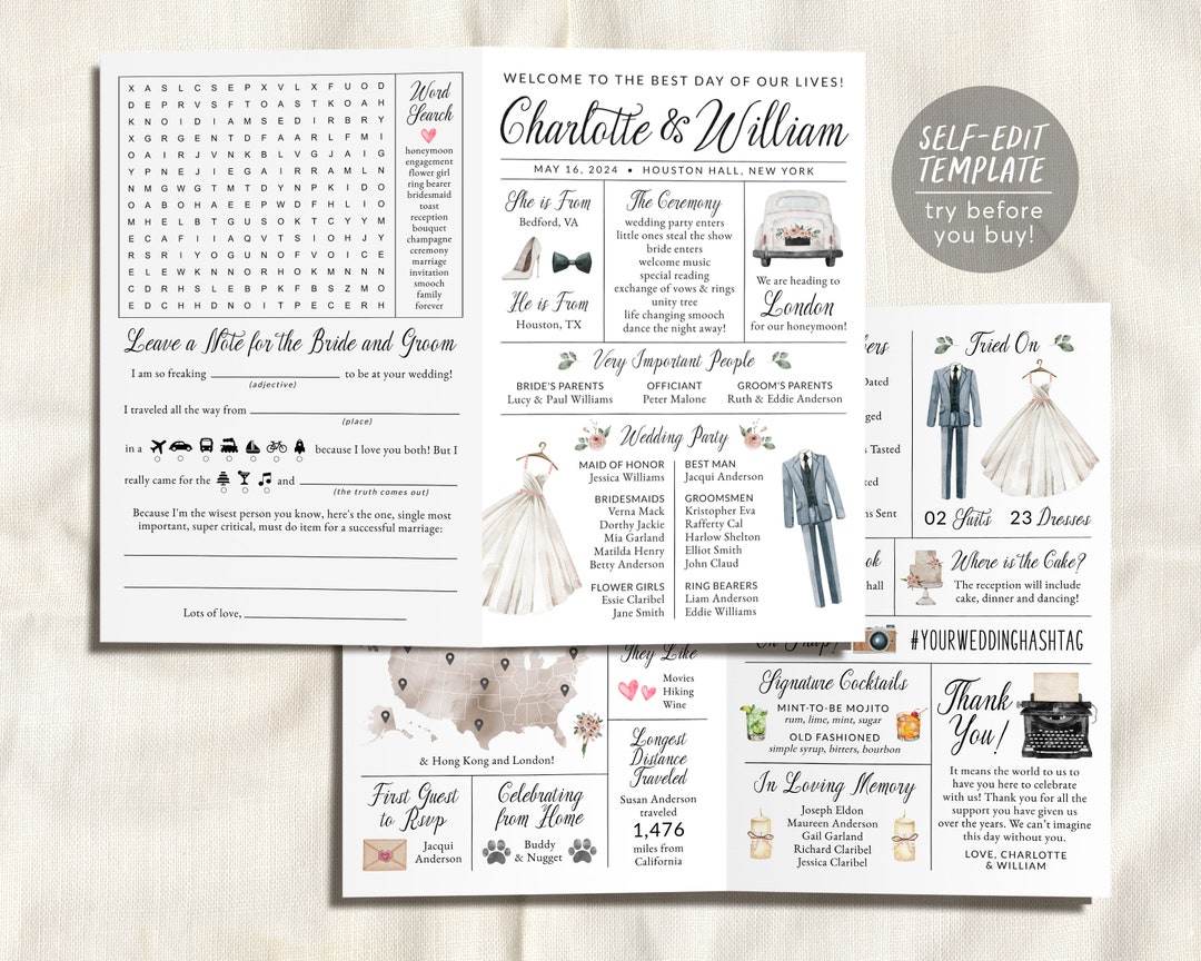 Infographic Wedding Bifold Program Editable Template, Watercolor ...