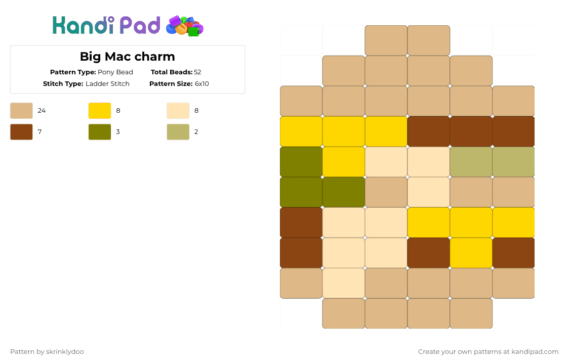 Big Mac charm Pony Bead Pattern - Kandi Pad | Kandi Patterns, Fuse Bead ...