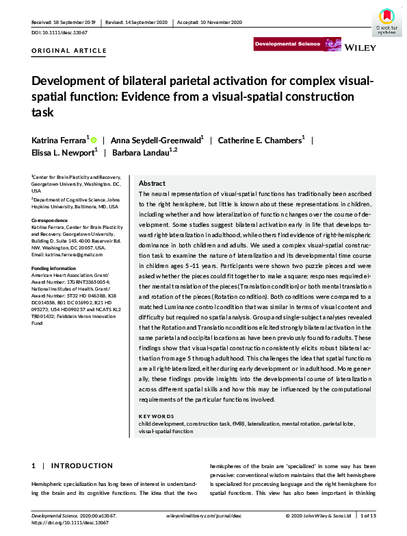 (PDF) Development of bilateral parietal activation for complex visual ...