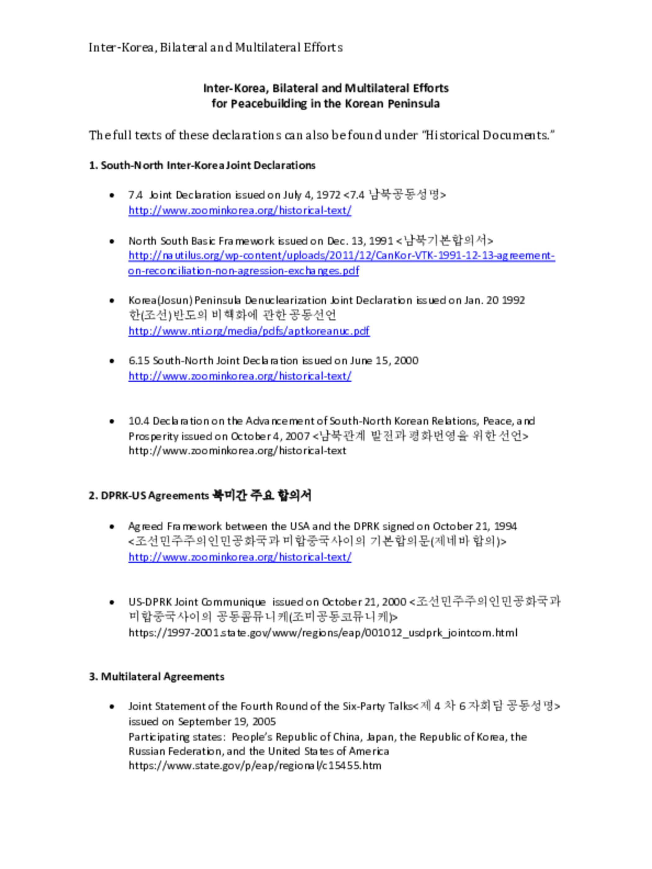 Inter-Korea, Bilateral and Multilateral Efforts for Peacebuilding in ...