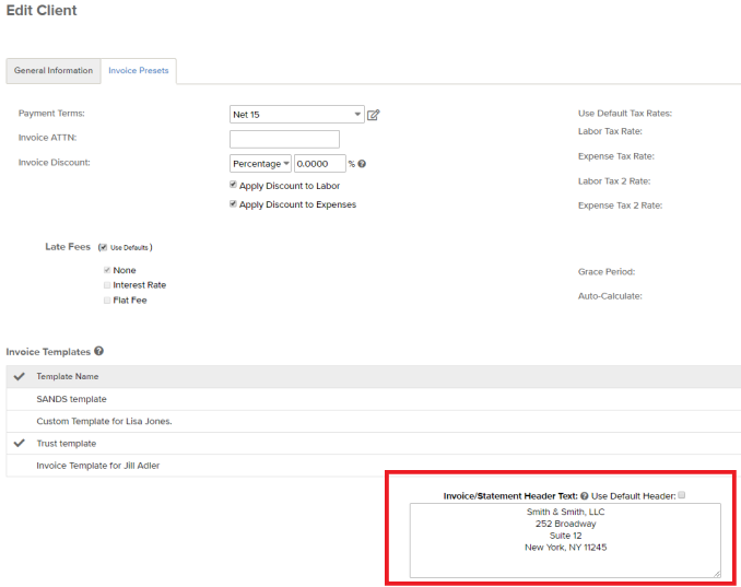 Invoice Statement/Header Text Setup – Bill4Time Support