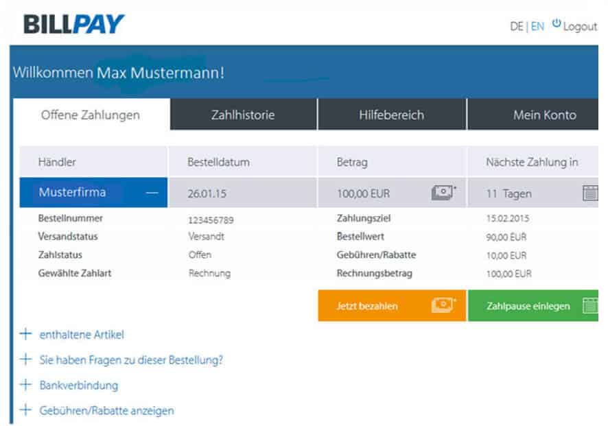 Alles über: BillPay - Rechnung, Ratenzahlung, Lastschrift & Kontakt