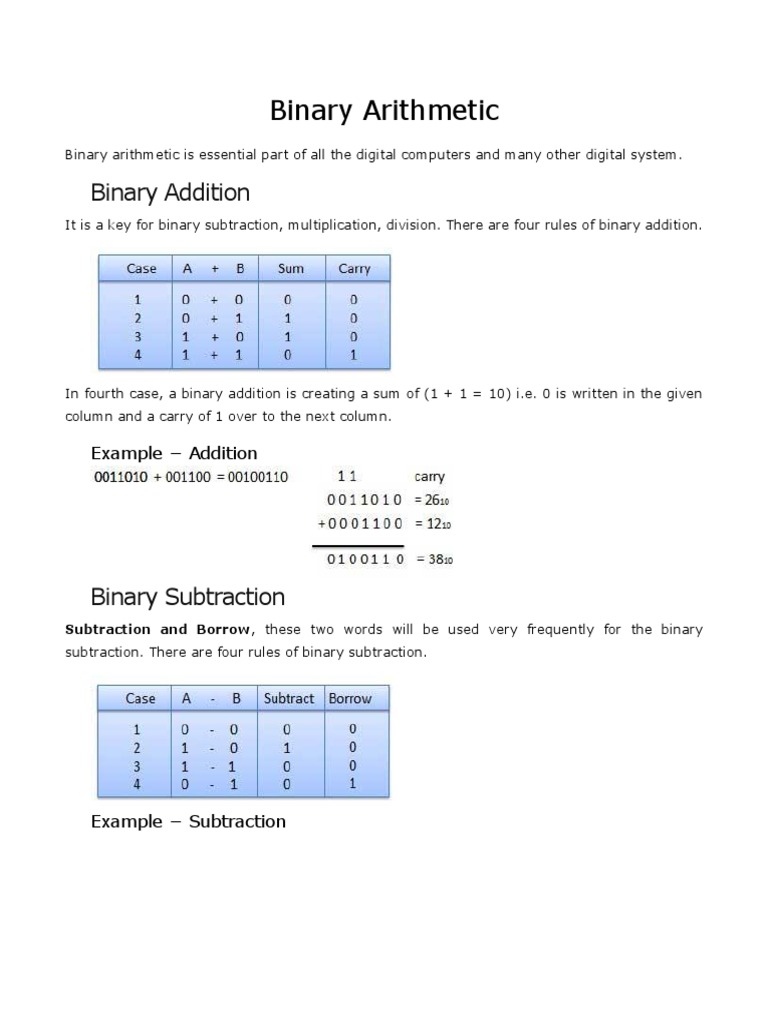 Binary Arithmetic - Arithmetic Operations on Binary Numbers Because of ...