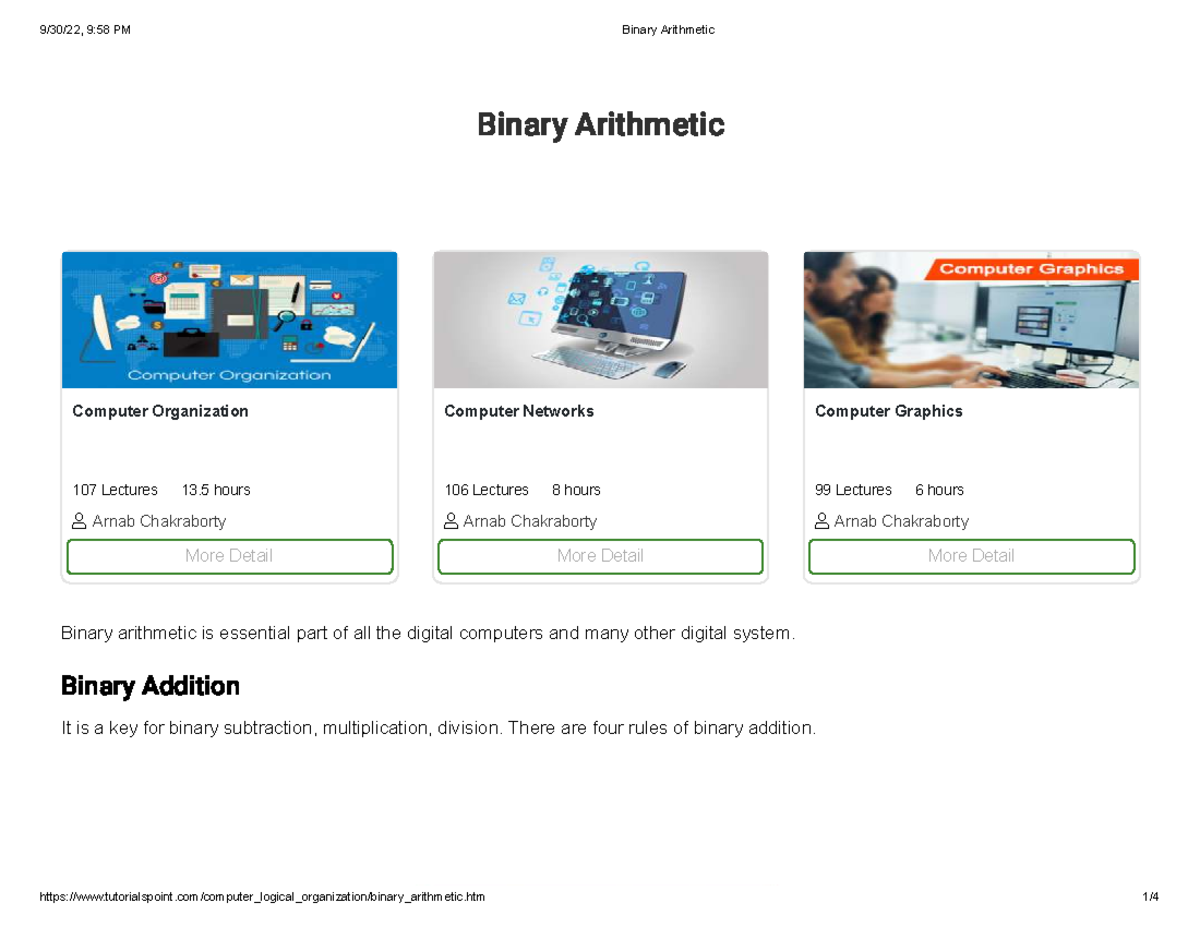 Binary arithmetic - Notes - tutorialspoint/computer_logical ...