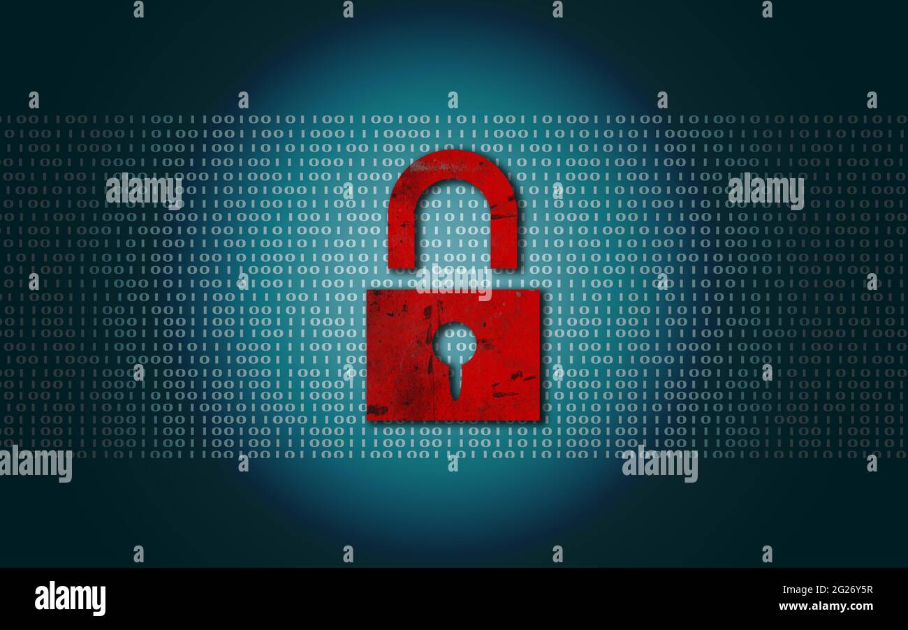 Digital security. Illustration of lock on binary code Stock Photo - Alamy