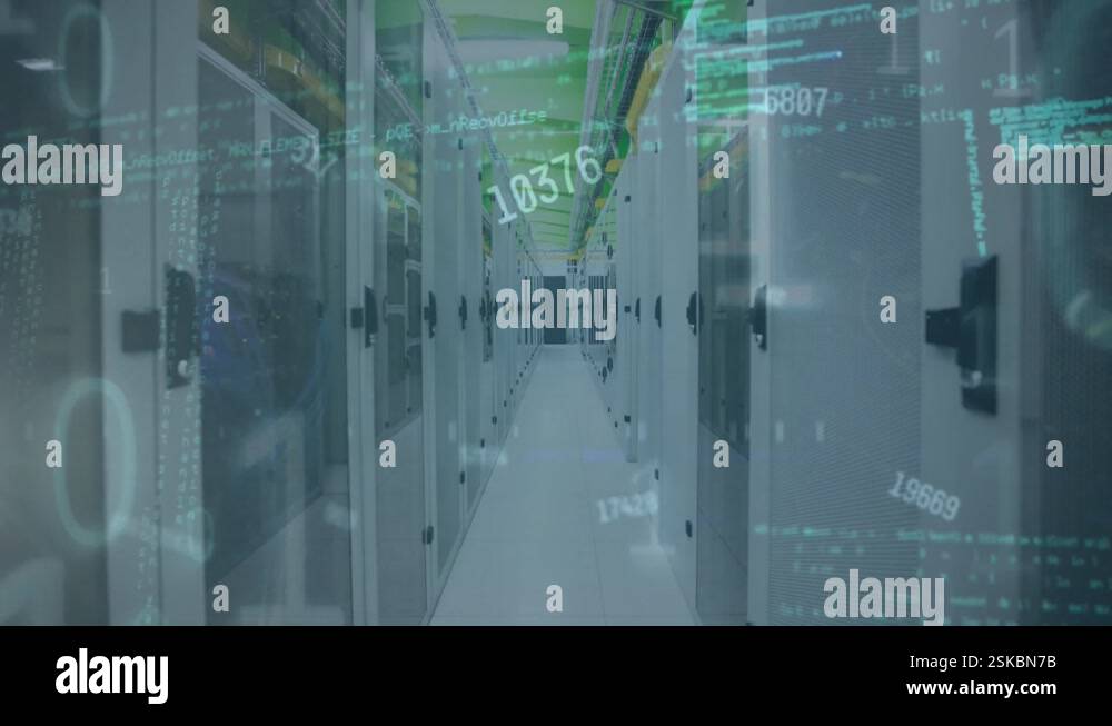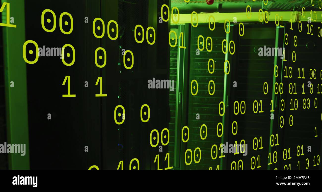 Image of green binary code over servers Stock Photo - Alamy