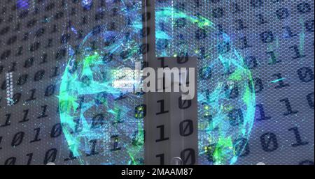 Image of binary code over globe made of icons Stock Photo - Alamy