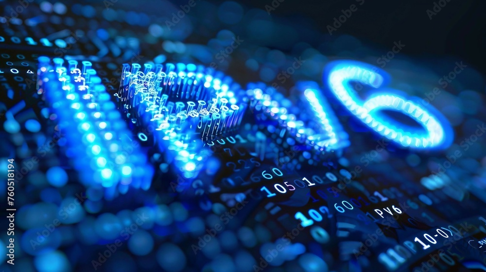 Digital blue matrix binary code forms the acronym IPv6 , symbolizing ...