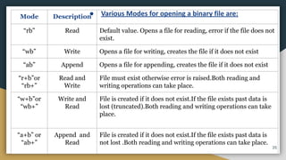 File Operations in python Read ,Write,binary file etc. | PPTX