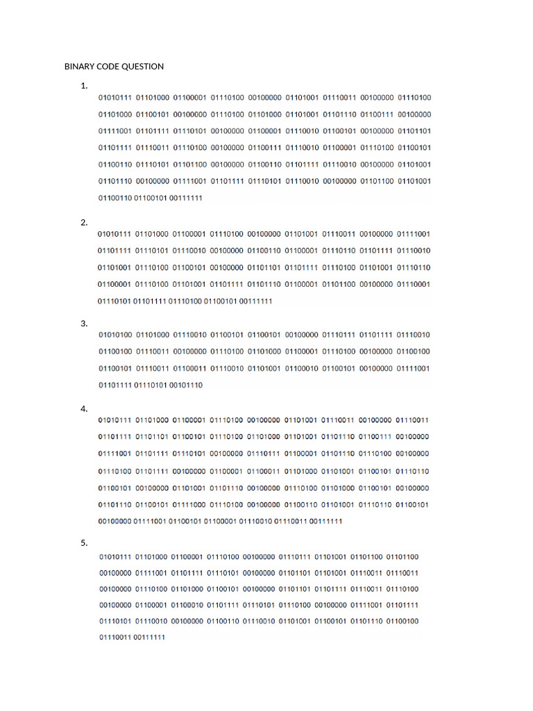 Binary - ! Binary Video 398 on corbettmaths Question 1: Write the ...