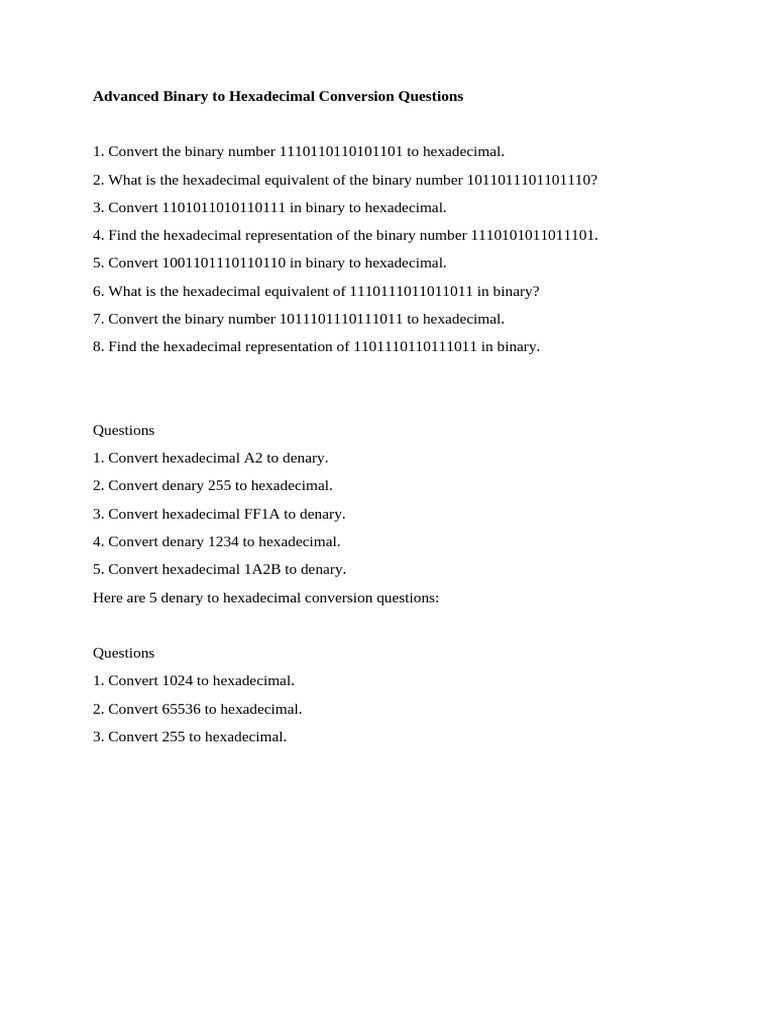 Binary To Decimal Binary To Decimal Example Questions – Find ...