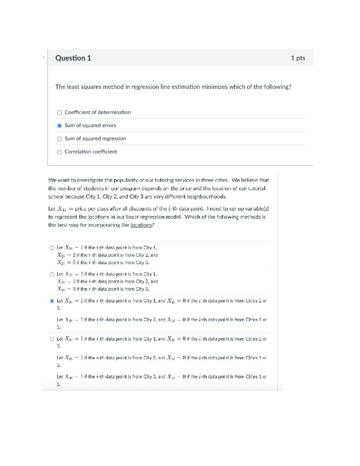 Quiz 1: Regression Analysis and Statistical Methods - Studocu