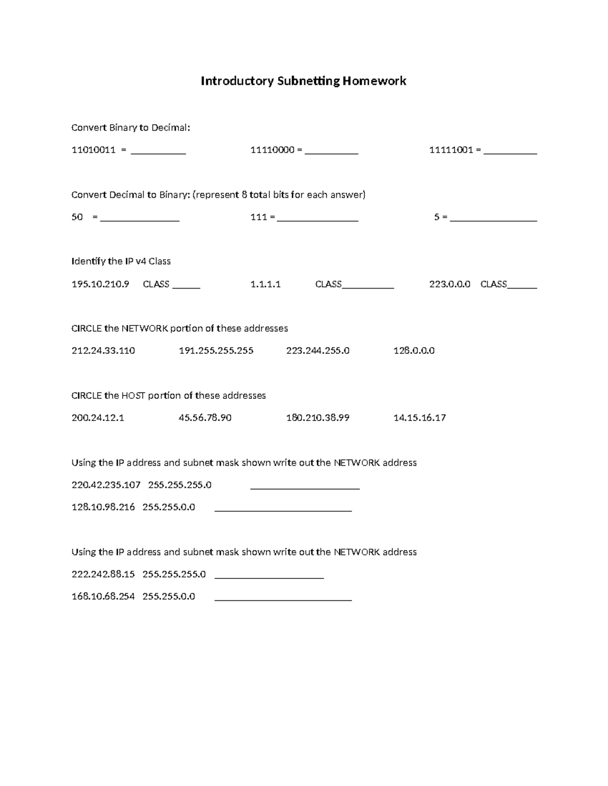 Subnetting Homework: Binary to Decimal Conversion & VLSM Analysis - Studocu