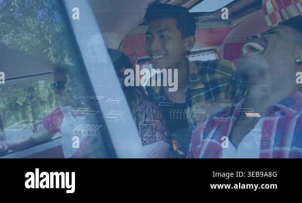 Animation of binary code over hands of diverse woman and man using ...