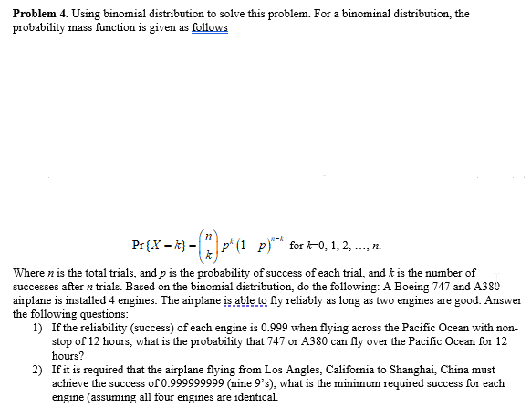 Solved Problem 4. Using binomial distribution to solve this | Chegg.com