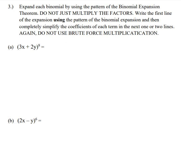 Solved 3.) Expand each binomial by using the pattern of the | Chegg.com