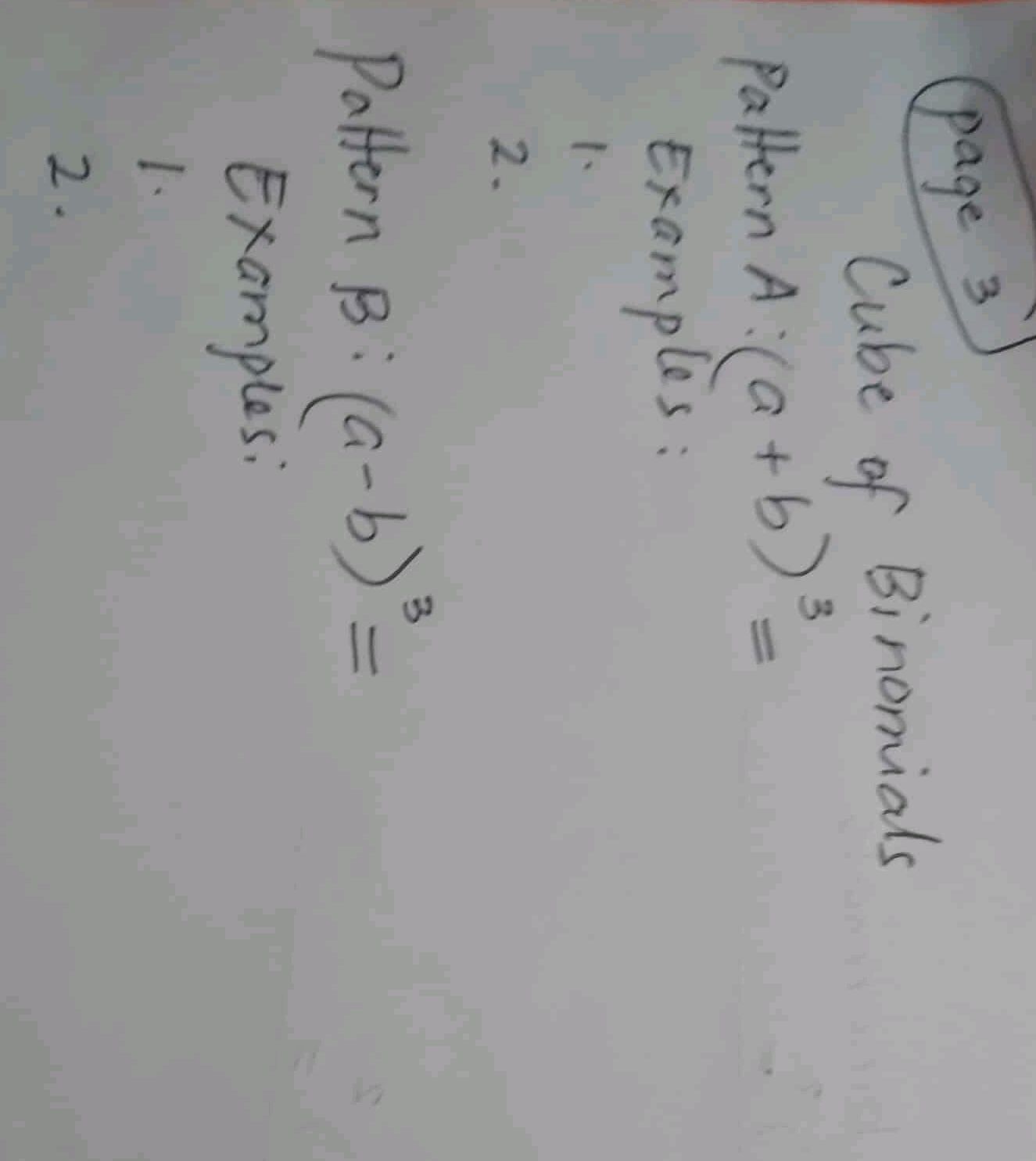 Cube of Binomials Pattern A: $(a+b)^3 =$ | StudyX