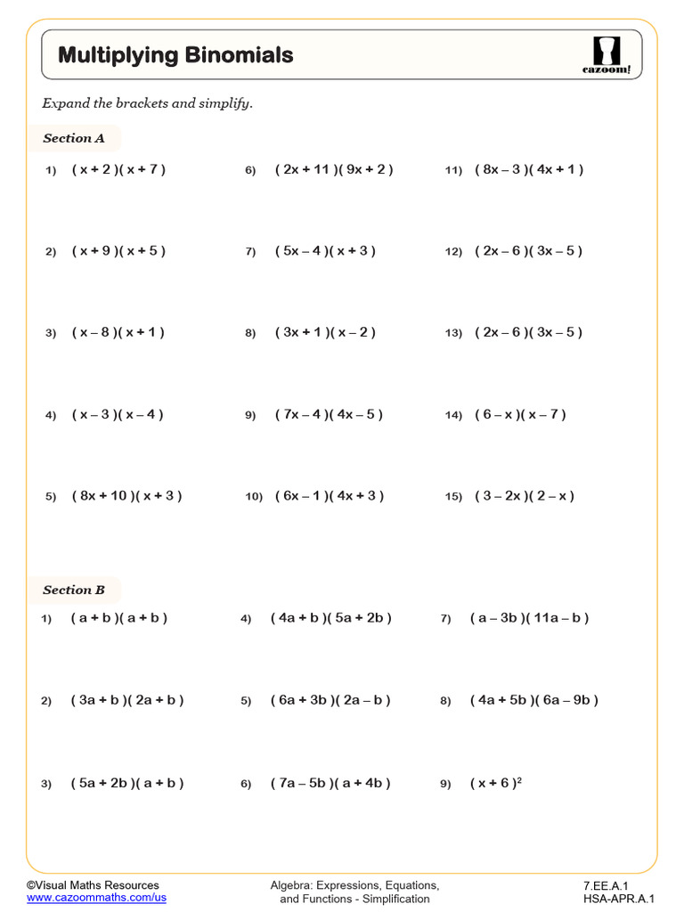 Expanding Binomials Worksheets | FOIL Method Algebra Practice | TPT