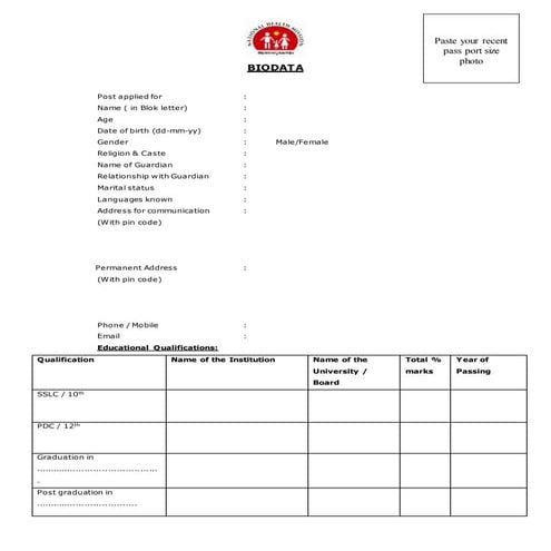 24 Bio Data Forms For Job - Free to Edit, Download & Print | CocoDoc