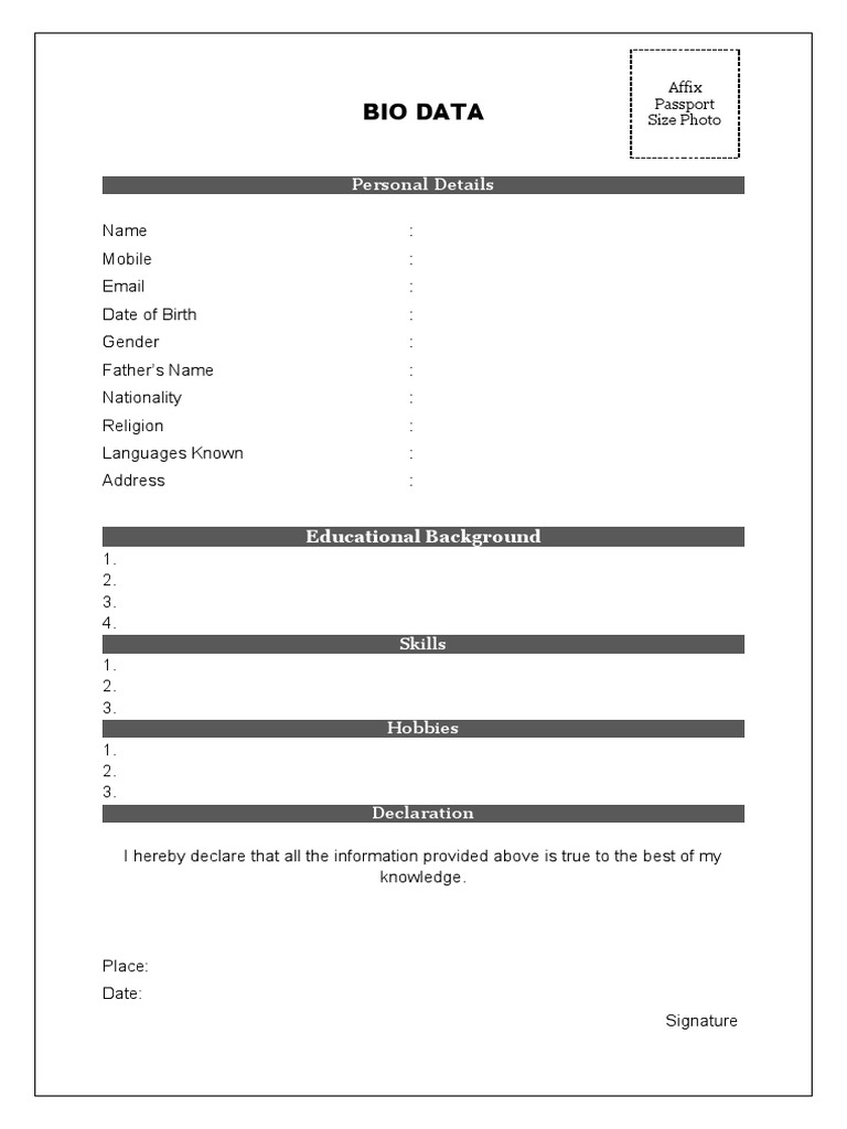 Bio Data Form Pdf For Job - Printable Forms Free Online