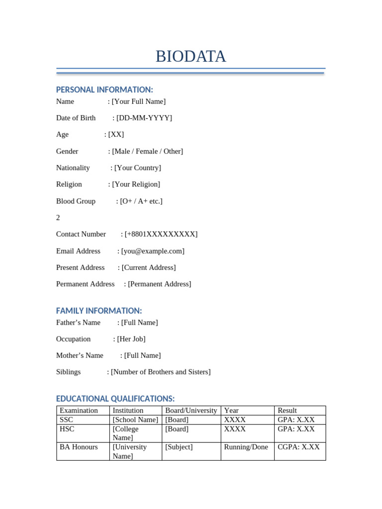 Biodata Format | Biodata Format Guide – BNXJCE