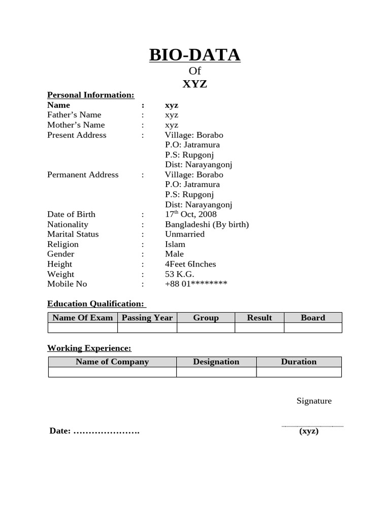 Sample Biodata Format Philippines / Bio Data Form Docx Bio Data Bio ...